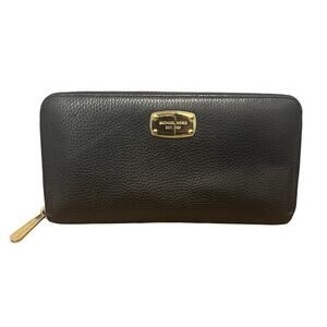 Michael Kors Leather Continental Large Wallet in Black Gold Tone Hardware