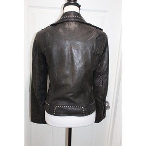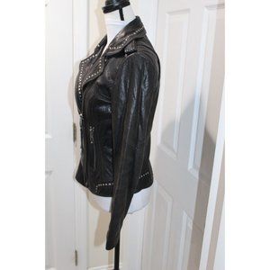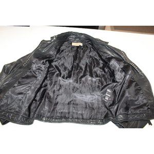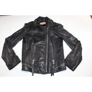 Michael Kors Leather Full Zip Studded Motorcycle Jacket Moto Biker Black Size XS