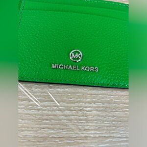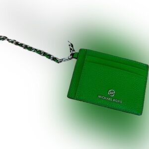 Michael Kors Leather Jet Set Charm Small ID Chain Card Holder Palm Green New