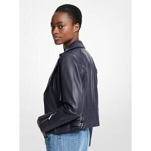 Featuring an asymmetric zip front, snap-fastened epaulettes, and polished hardware for a timeless moto look. Crafted from smooth 100% leather with a relaxed fit ideal for layering. Fully lined in soft cotton for comfort and structure. Designed to add an effortlessly edgy finish to any outfit. Material: 100% Leather; Lining: 100% Cotton. Dry clean by leather professional. Fits true to size