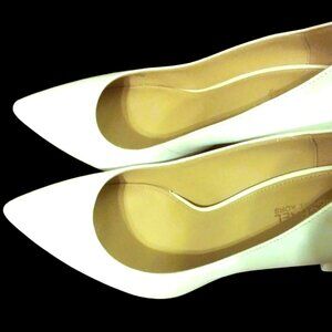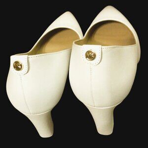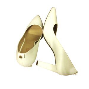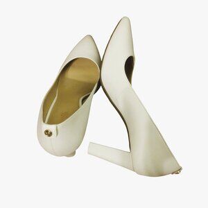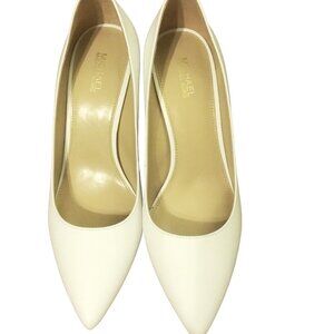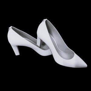 A Pair of Michael Kors Leather Abbi Flex Block Heel Pumps are listed for sale. The shoes are New and in excellent condition. These Michael Kors Leather Abbi Flex Pumps are known for their classic design, comfort, and versatility making them a popular choice for various occasions.