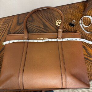 Michael Kors Leather Signature Tote Bag SADDLE BROWN color used ONE TIME -- EUC