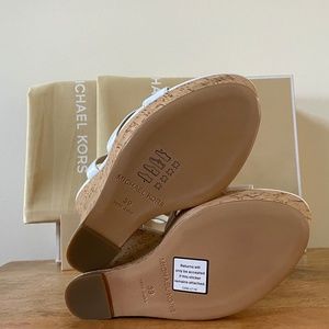 New in box with dust bags Michael Kors white Shana wedge sandal. Designer size 39. Heel measures 5.25" platform 1.5"