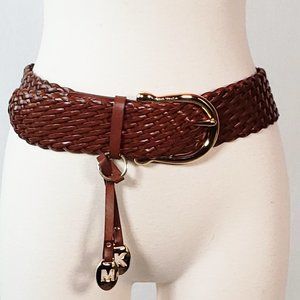 Michael Kors Leather Woven Wide Belt - Size Small Gold Buckle and LOgo