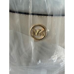 Carry your essentials in style with this chic and spacious Michael Kors Leida Large Tote. Crafted from beautiful vanilla-colored leather, this tote features a structured silhouette, subtle seam detailing, and the iconic Michael Kors logo. It's perfect for everyday use, work, or travel.