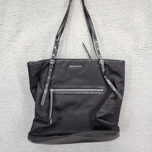 Keywords: Michael Kors, Leila Tote, Large Tote, Black Tote, Nylon Tote, Designer Bag, Silver Hardware, Work Bag, Travel Bag, Everyday Tote, Shoulder Bag, Leather Straps, Adjustable Straps