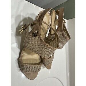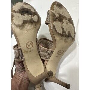 Michael Kors Leilah Sandals Nude Size 7.5M Mesh Ankle Strap 3 Inch Heel