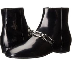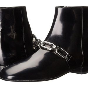 Expertly crafted in Italy from glossy Spazzolato leather, these Lennox ankle boots are detailed with chain-link hardware. The versatile silhouette showcases a pointed round toe and stacked heel for a slight lift. They’ll put a polished, punk-inspired spin on cropped trousers and leggings alike. Heel Height: 0.8". 100% Leather. Side Zip Fastening. Made in Italy.