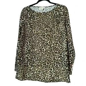•Style Profile: Michael Kors Leopard Animal Print Lightweight Pullover Blouse Sheer Overlay SM