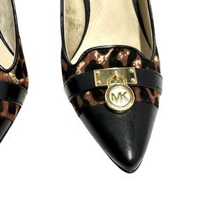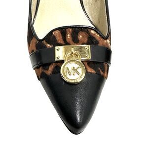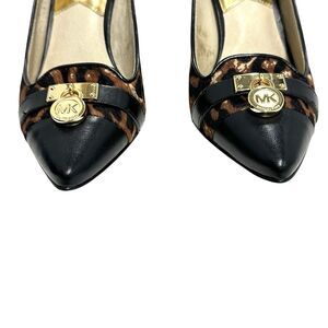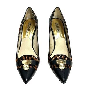 Michael Kors Leopard Animal Print Pumps Heels Black Leather Trim Calf Hair 6.5M