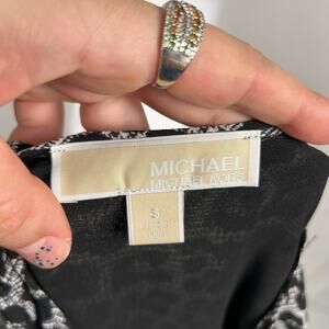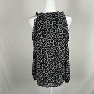 Michael Kors Leopard Print Cold Shoulder Long Sleeve Blouse Top Small Gray Black