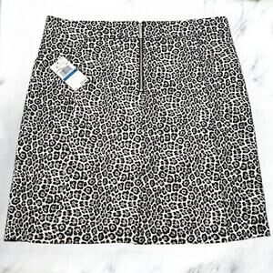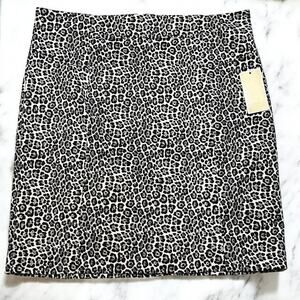 Michael Kors Leopard Print Skirt Sz XL Edgy Career Chic Black White Back Zip NWT