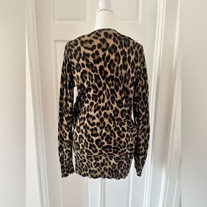 Michael Kors Leopard V-Neck Tunic Sweater M Brown Lightweight Layering Animal