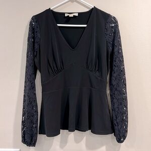Michael Kors Light Blue Blouse Ruffled Sleeves V Neck w/Zipper Women’s Top Sz S