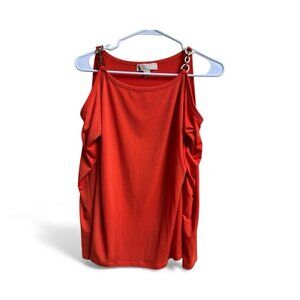 Michael Kors Light Blue Blouse Ruffled Sleeves, V Neck w/Zipper with MK Logo, Women’s Top Sz S