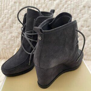 Michael Kors Light Charcoal Gray Suede Leather Wedge Lace Up Tie Boots