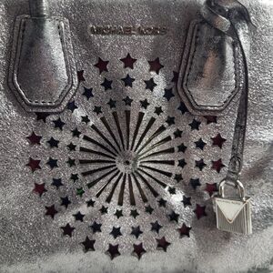 Michael Kors Light Up Mercer MD Messenger Leather Tote LT Pewter Battery Pack