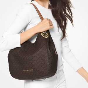 Michael Kors Brand new with tags Lillie. This bag is considered a Large sized shoulder bag. 3 large inside pockets. gold chain link shoulder straps. Gold hardware.