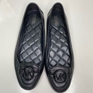 Michael Kors Lillie Black Leather Quilted Ballet Flats with MK Logo Size 7.5
