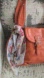Gorgeous super soft pumpkin colored Leather exterior with silver hang tag, silver hardware with stud detail, fixed double handles, with flap magnetic button closure.