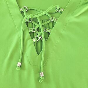 Michael Kors Lime Green V-Neck Stretchy Casual Dress - Size Small
