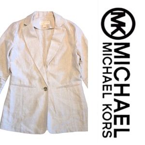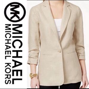 Michael Kors 100% Linen Shirred Sleeve Boyfriend Blazer