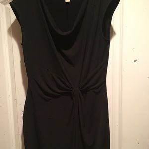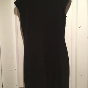 This Michael Kors LBD is knotted and has ruching to the side, similar in style to a wrap dress. It's a cowl neck and super stretchy material. The knot at the waist is super flattering and hides any little pudge. I'm 5'7" and this dress is a few inches above my knee. The back has a center seam for a super sleek look! I wore this once to work.