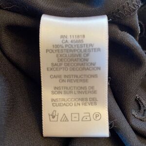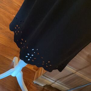 Black Michael Kors long-sleeve dress with eyelet trim at hem and on sleeves, elasticized waist and tie closures at neck with brass detail. The sleeves have a slight bell to them. EUC. Perfect To Dress Up While Still Being Comfortable. 100% Polyester.