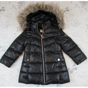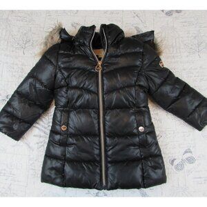 Michael Kors Little Girls Heavy Weight Stadium Jacket Black Rose Gold sz 2T