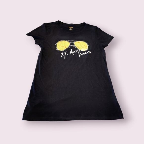 Michael Kors Logo Aviator Glasses T-Shirt Women's Medium Fitted Black Gold