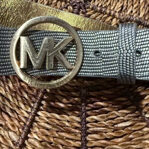 Michael Kors Logo Belt Leather Faux Croc Reptile Gray Silver Tone Buckle L 39”