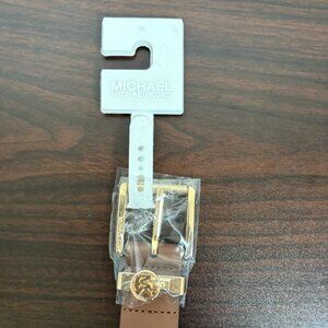 Michael Kors Logo Brown Leather Belt Gold Hardware Size XL New