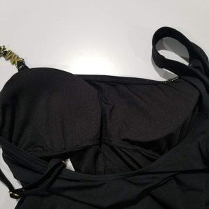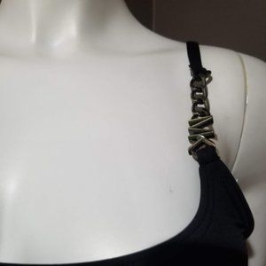 Michael Kors Logo Chain Scoopneck One Piece Swimsuit Black