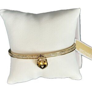 Michael Kors Logo Crystal Pave Heart Charm Gold Stainless Steel Hinge Bracelet