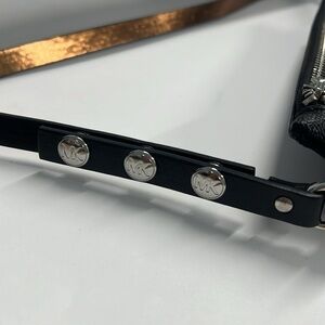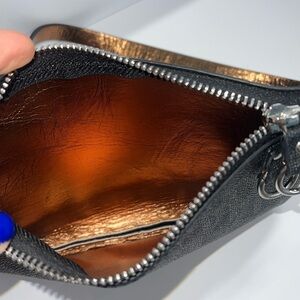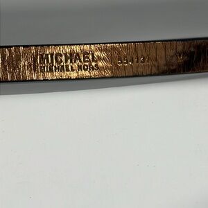 This is a beautiful Michael Kors Logo Flat Belt Fanny Pack Bag Rider. Can be attached or tucked into your larger bag or tote. Gray logo exterior and rose gold brass color interior. Front zip closure. Belt can be adjusted via the three snaps from 18” to 20” as measured flat, so approximately a 34” - 36” waist. No odors. No stains.