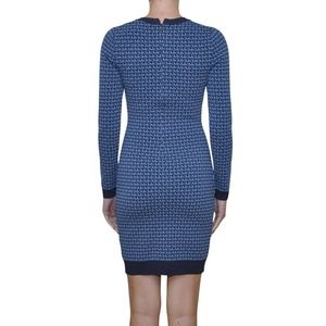Michael Kors Logo Jacquard Dress Long Sleeve Steel Blue XS/M/L Nwt$225
