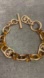 This bracelet is made from gold-tone brass and features tortoiseshell chain links.
