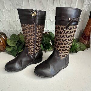 Michael Kors Logo Print Tall Children’s Riding Boots Brown Size 13
