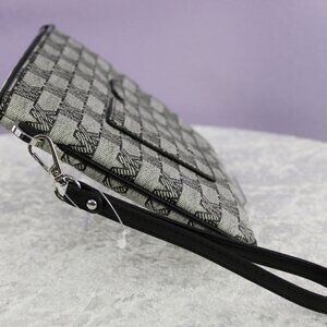 Michael Kors Logo Print Wristlet Clutch Pouch – Grey/Black Monogram MK Zip Bag