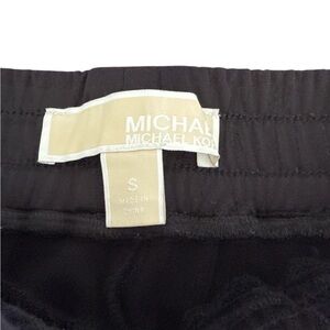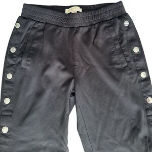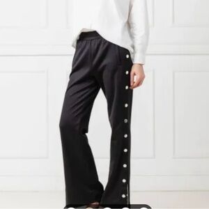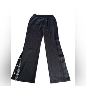 Black pull on fabric jersey material nylon size type regular style track pants leg style full