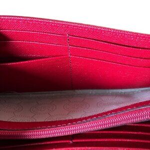 Michael Kors Logo Wallet Red Checkbook Leather Tri Fold Card Change Pockets