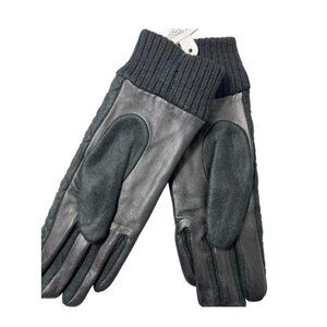 Michael Kors Logo Womens Black Quilted Knit Leather Trim Gloves Sz M New