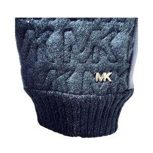 Michael Kors Logo Womens Black Quilted Knit Glove with Leather Trim Sz M NWT