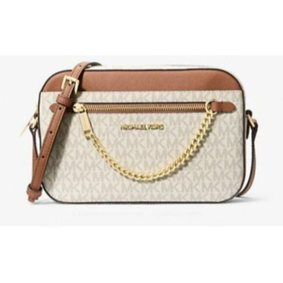 Michael Kors Womens Vanilla Brown Jet Set Large Logo Crossbody Bag NWT
