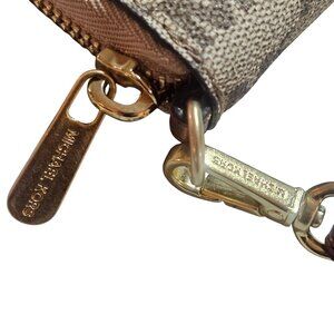 Michael Kors Logo Zip-Around Wristlet Wallet Beige/Brown Leather & Canvas