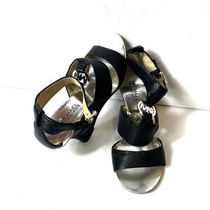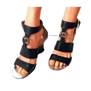 Michael Kors Logo Black Leather High Heels Women's 6M Open Toe Sling Ankle Strap