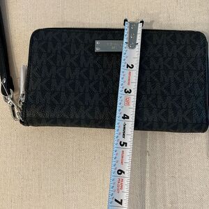 Michael Kors Logo Black Zipper Wristlet, Brand new but no tags on it. See pics for the exact measurements. Wristlet holds your credit cards, drivers license and cash or phone.