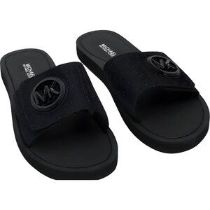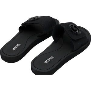 Michael Kors Logo-Charm Slide Sandals Black Slip-On Comfort Women's US 8M