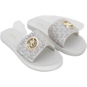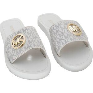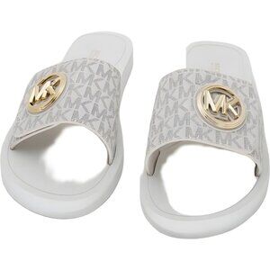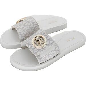Michael Kors Logo-Charm Slide Sandals Cream Vanilla Women's Casual Pool 8M