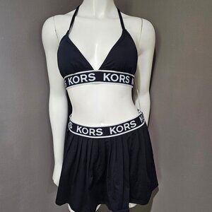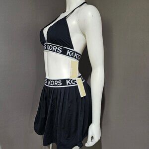 Head to the beach and soak up the sun in style in this matching logo-elastic bikini top and matching bottoms fromMichael Kors.